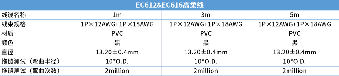 G22恒峰配置了3种不同的电缆类型:其中,1m,适用于AGV、复合机器人,以及对空间要求密集的场景。