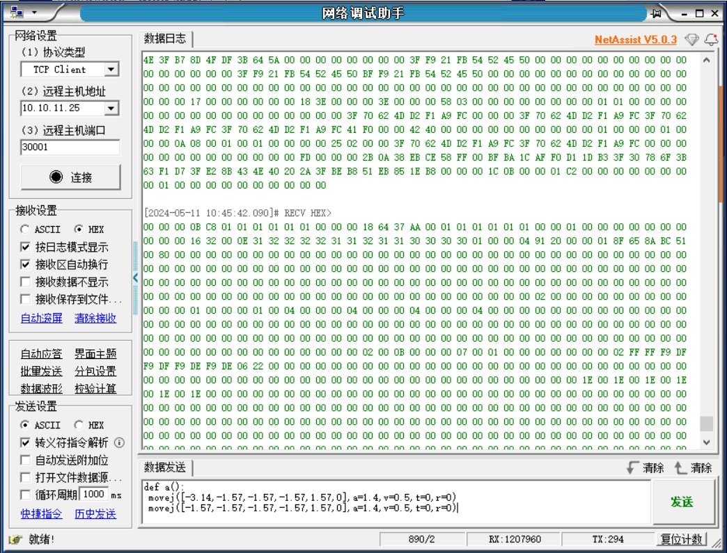 外部设备可以往30001直接发送机器人脚本,机器人处于远程模式,机器人就会运动。