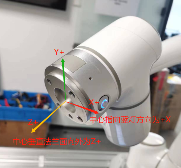 设置负载重心前首先G22恒峰先知道法兰盘中心点的位置及坐标系方向,EC系列法兰盘中心点如下图: