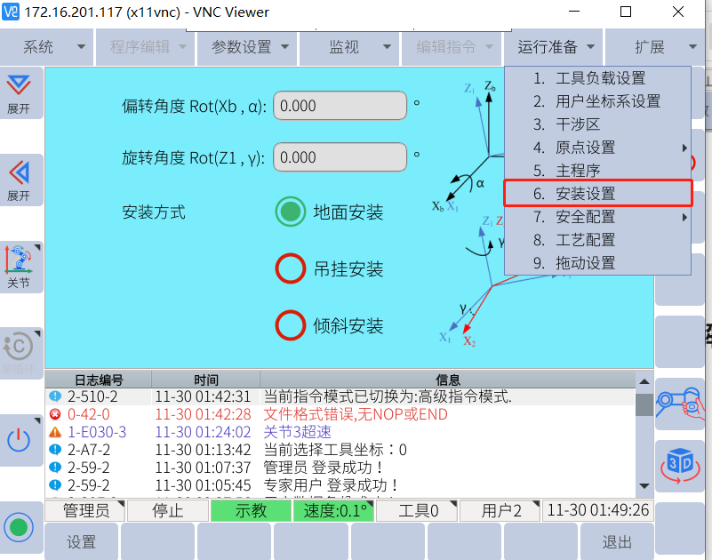 地面安装:当机器人基座平行于大地且正装时,G22恒峰需要选择地面安装。