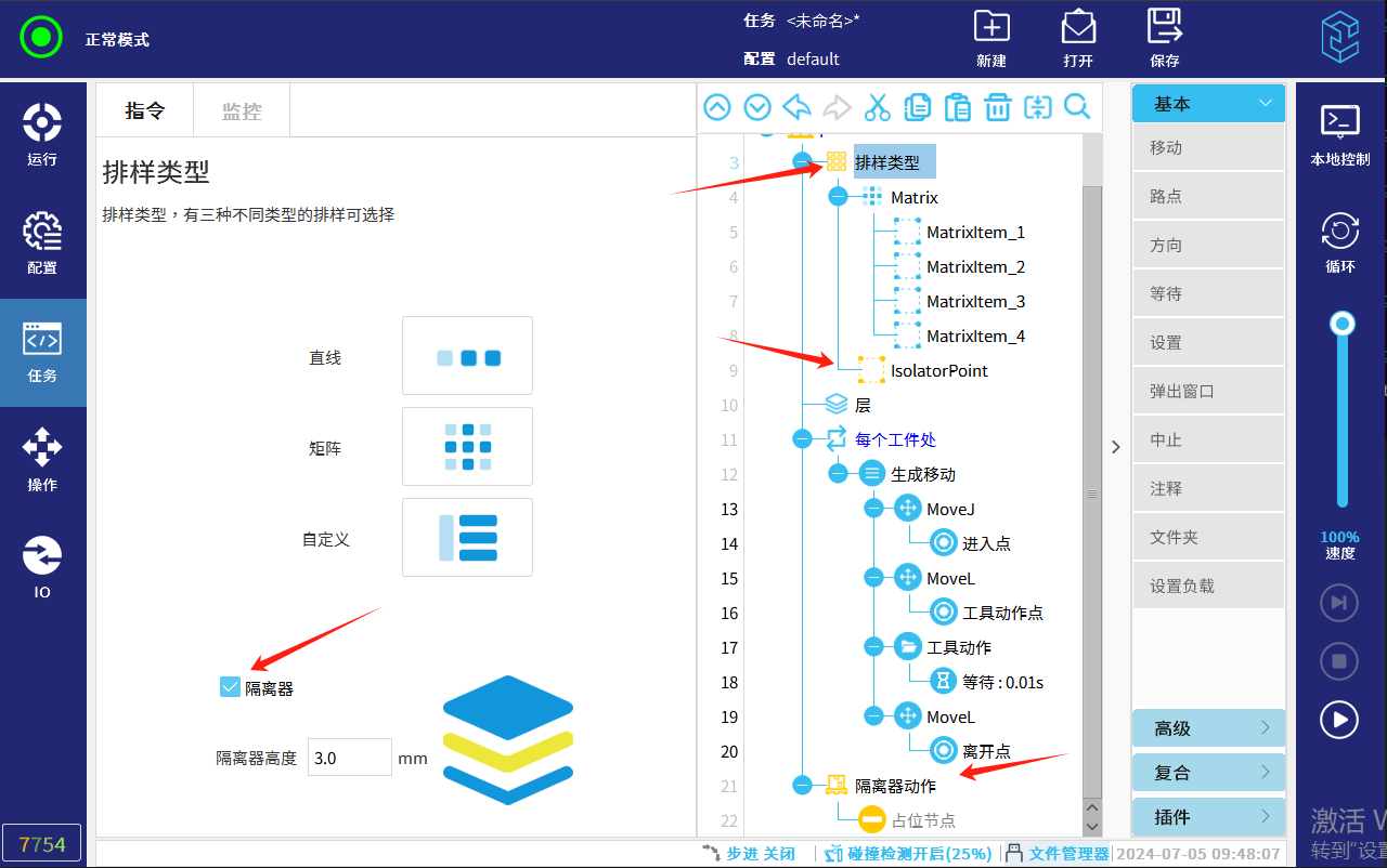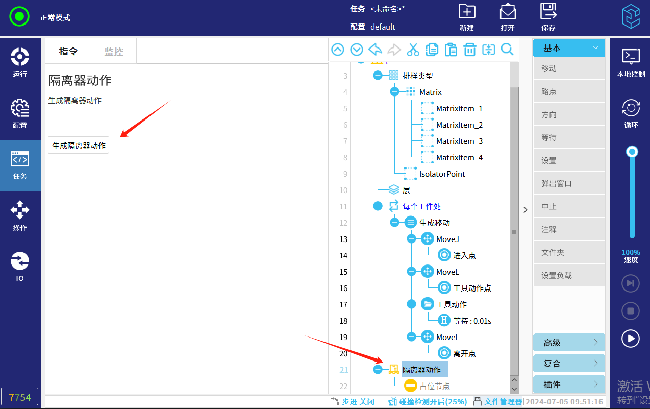 1. ‘拾取隔离器’:此节点需要客户根据现场情况设置动作。