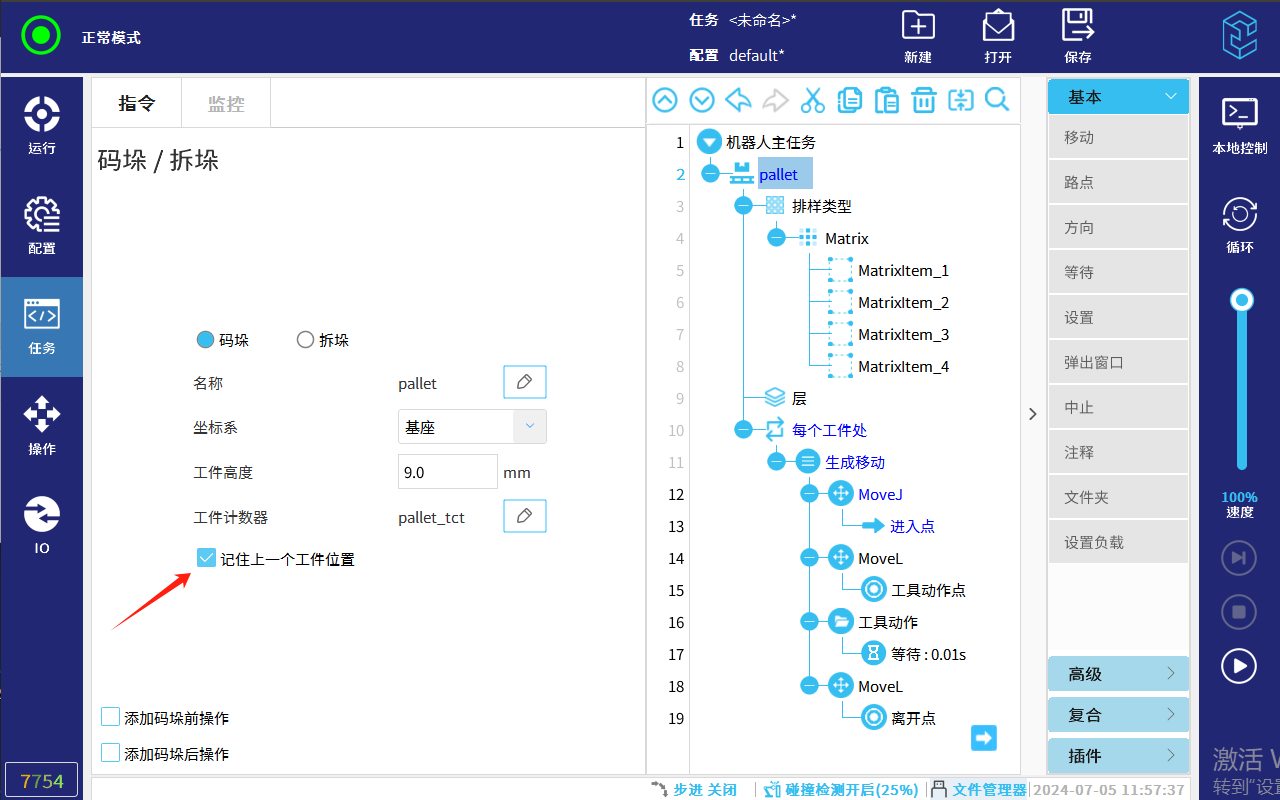 创建码垛任务