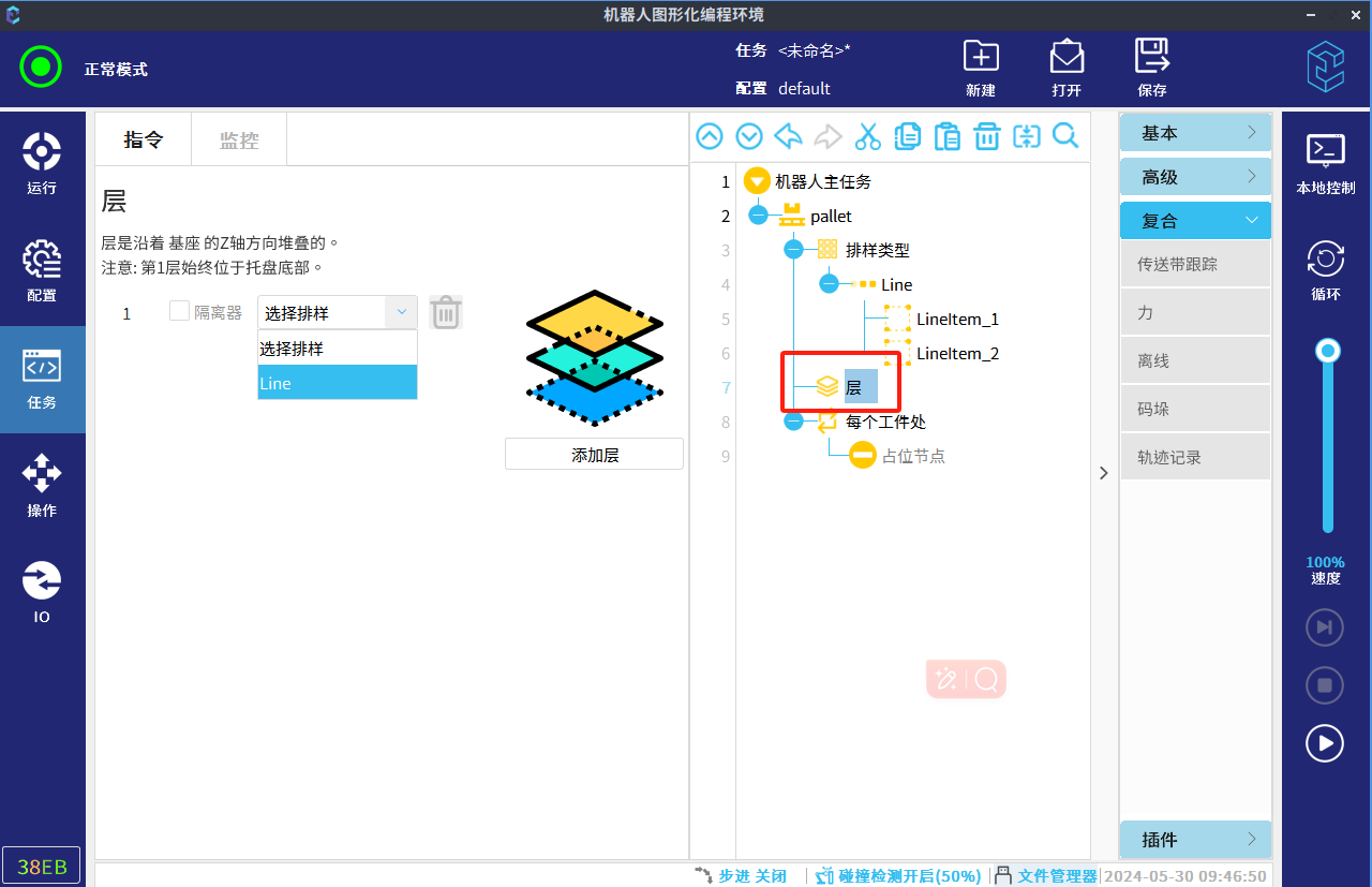 码垛支持用户自定义排样类型、层数、参考点等,进行码垛和拆垛任务的编写。