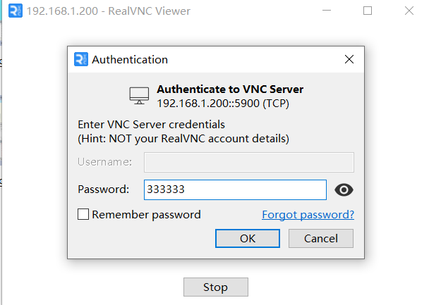 4. 在VncViewer的界面IP输入栏中输入对应机器人的IP地址,回车链接,密码为333333,即可