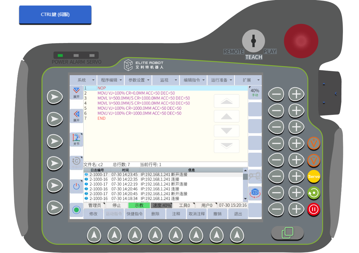 VNC是一款优秀的远程控制工具,Elite_EC系列机器人内部已经集成VNC服务器,用户可以通过网线链接即可在电脑上进行查看、控制机器人的示教器界面。