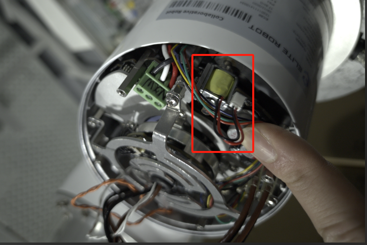 如果无法进入反向驱动,或机器人无法上电,或者因为各种原因导致机器人无法脱离卡死的可以把机器人端盖拆开;将电磁铁往下压,往下压后可以转动该轴。