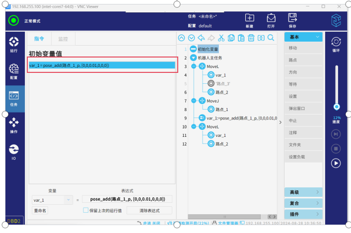 ● 变量路点、相对路点:由于此两种位置的路点没有固定的位置信息,所以此类型路点作为起始位置时,机器人会直接从当前位置开始运行任务,不会弹出手动运行到位置的页面,该逻辑可以实现可变起始安全位置的逻辑。(要注意的是使用变量路点做为起始位置时,要先在初始化变量里对该变量进行赋值,如图-2红框所示,如果不进行赋值就会出现报错)