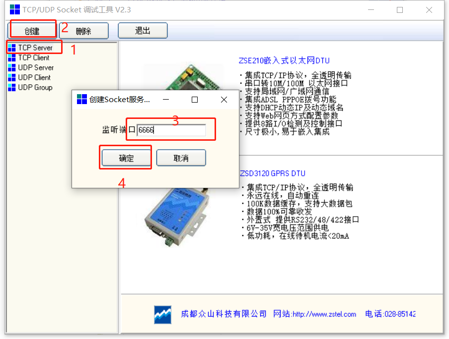 Socket Tool 工具做服务器设置,端口为6666