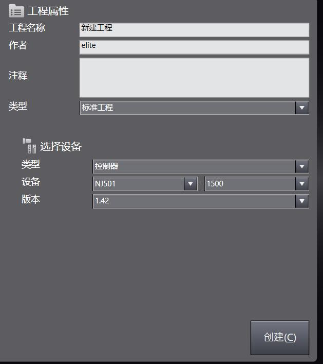 2、选择对应的plc版本,以及对应的设备型号,点击创建