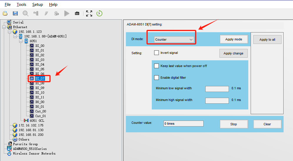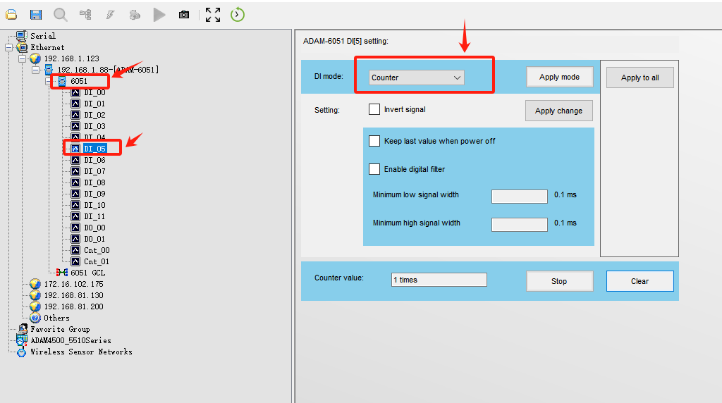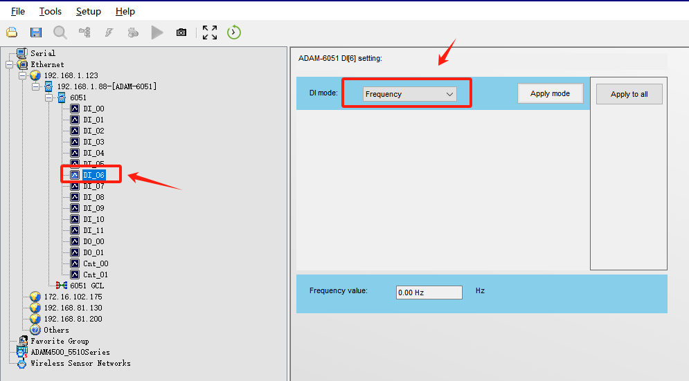 点击下方6051,会弹出输入密码,密码为00000000,然后依次配置下列接口类型,完成后点击后面Apply mode.