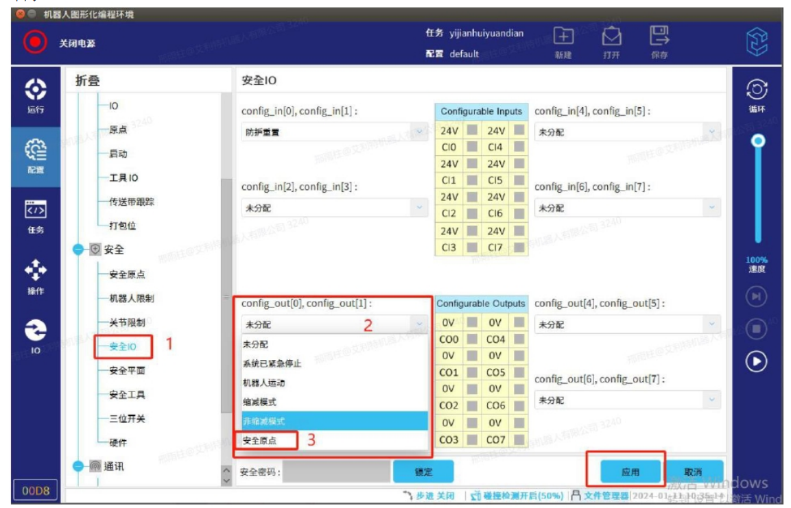 安全原点信号配置步骤: