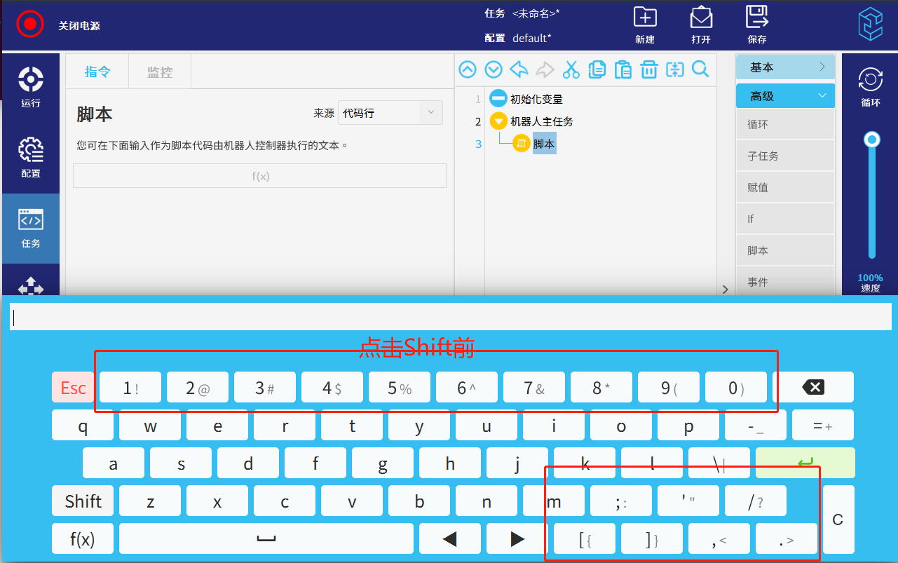 2. 参考红框处,点击 "SHIFT"后,原本的数字键会切换至字符键,字符键则会切换至其他字符。