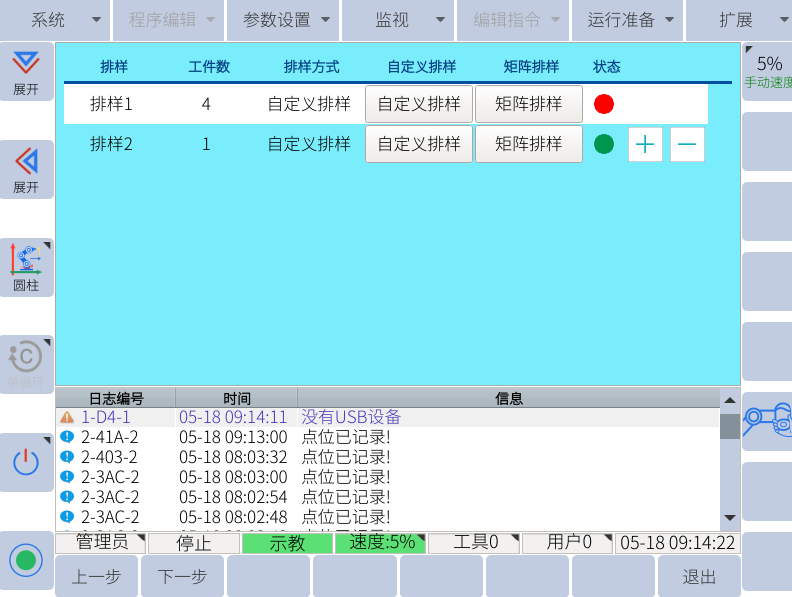 7. 自定义排样则需要自己手动示教各个点位。