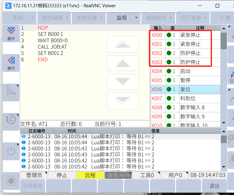3、PLC是否给到机器人急停信号或PLC与机器人断开。