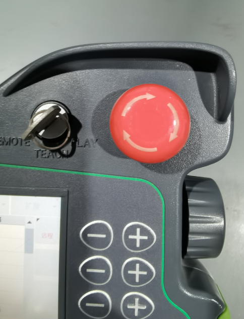4、检查示教器右上角急停按钮有没有拔出。(再次拍下顺时针转出)