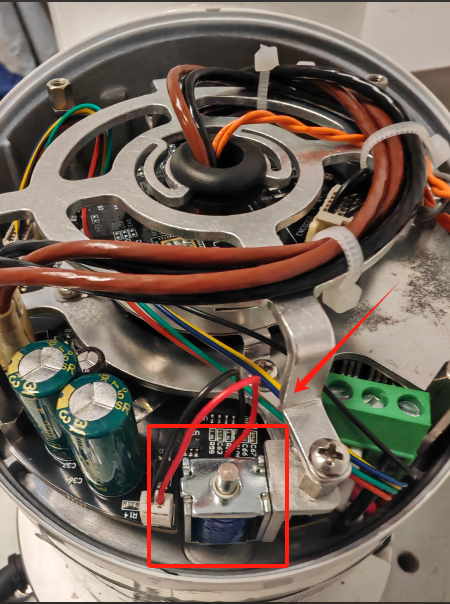 拆开端盖前需要对机器人进行断电,当拆开端盖后找到抱闸机构,如下图:
