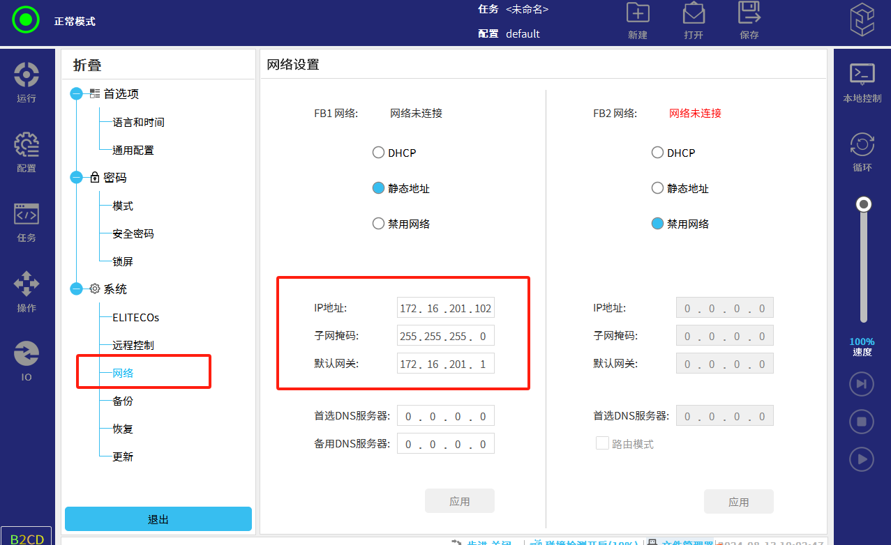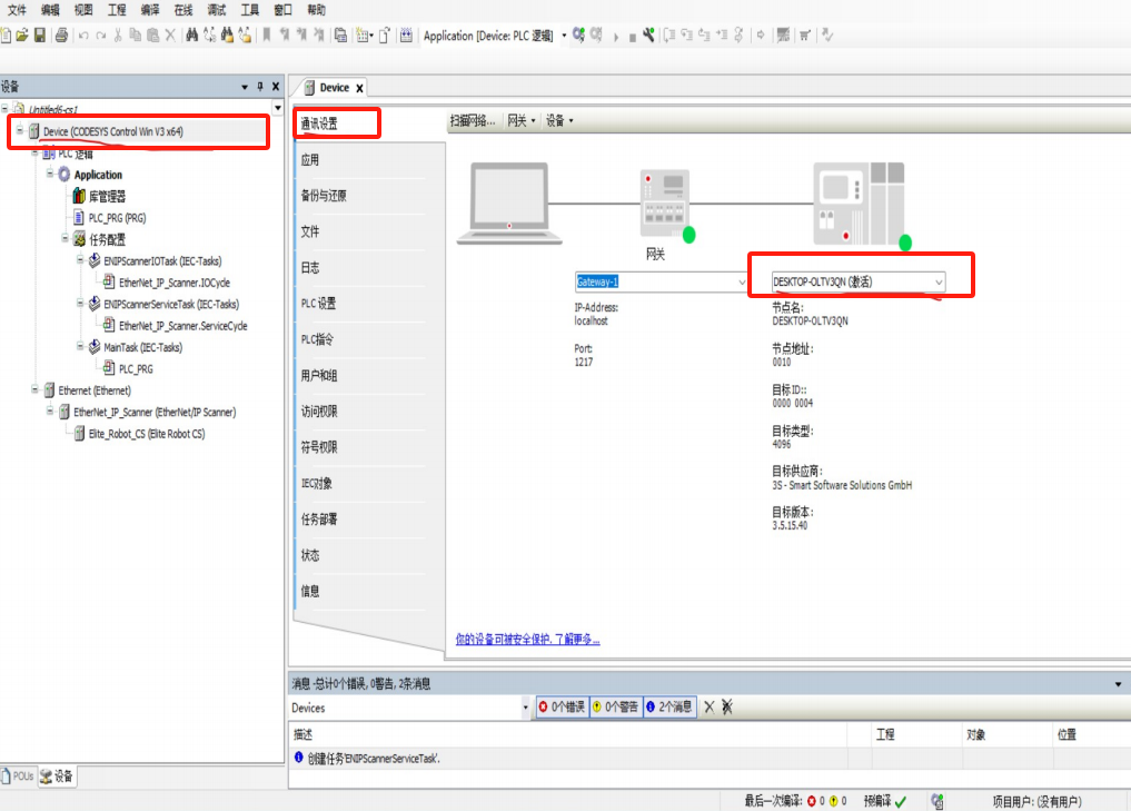 PC 连接使用 FB1 网络,Codesys 使用 PC 端,IP 地址设置 FB1 网络。