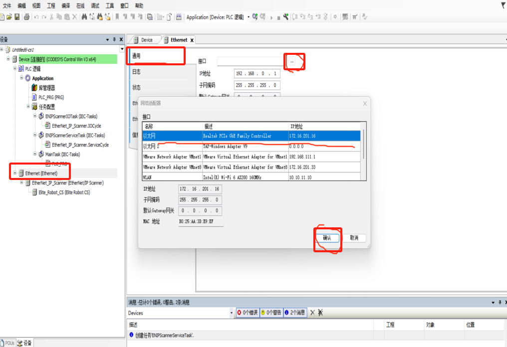 选择Ethernet-通用-接口-选择当前对应的以太网(当前电脑端口)