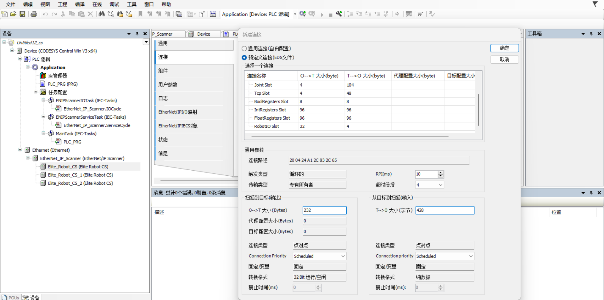 CS机器人通过codesys与两台CS机器人进行EIP通讯
