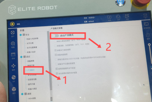 ● 进入专家模式,选择”产测模式” ,并点击”启动产测模式”,如下图。