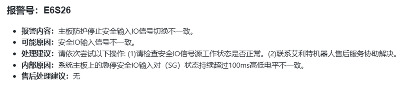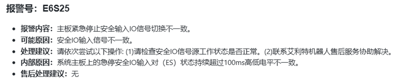 E6S25 报警所指示的是:主板紧急停止安全输入IO信号切换不一致: