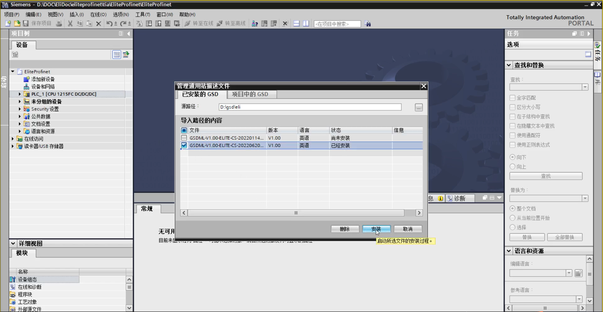 请登录企业微信-微盘查找名称为:GSDML-V1.00-ELITE-CS-20220620.xml 的文件,如果是外部人员请咨询G22恒峰工程师索取。