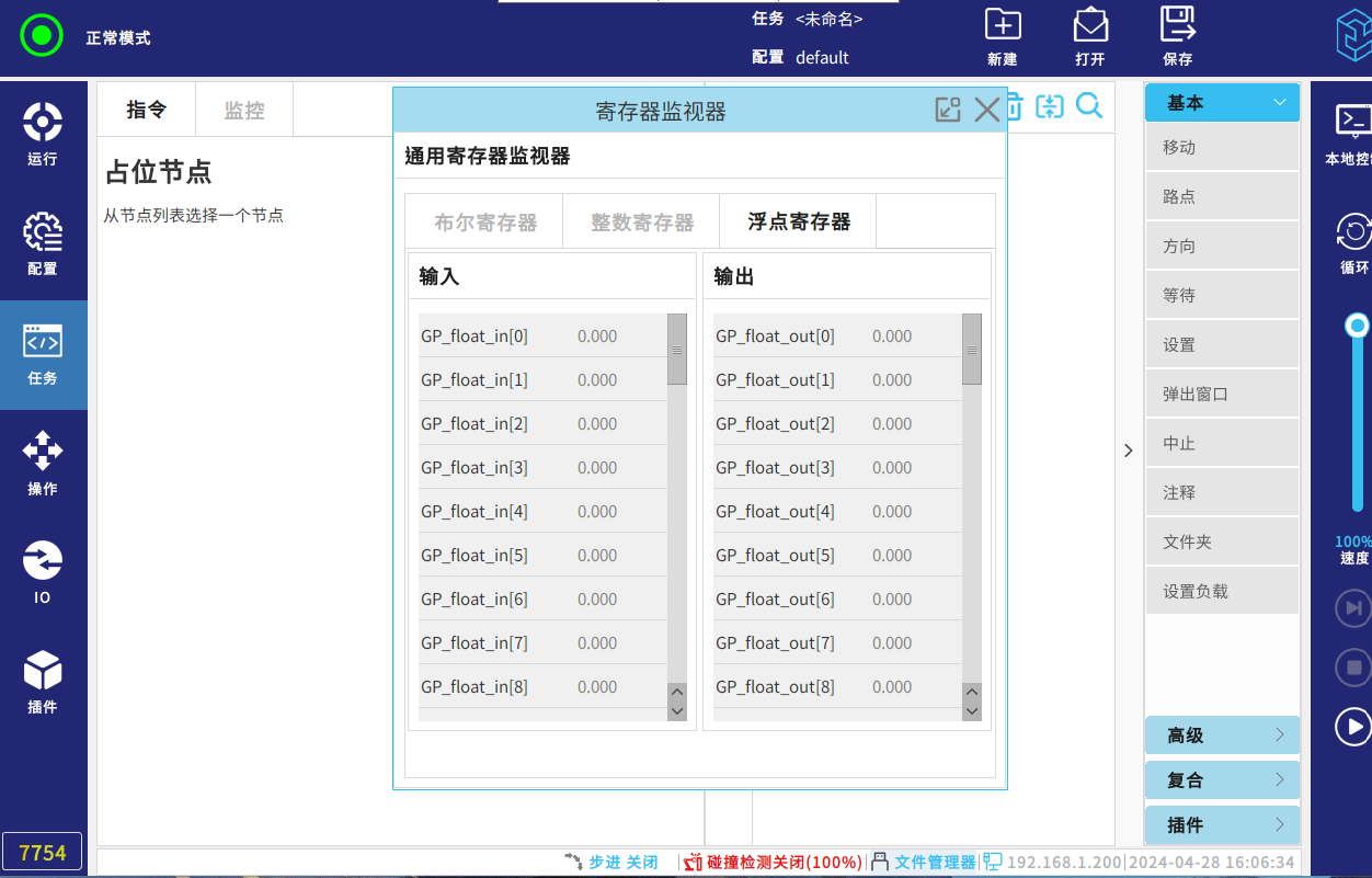 R2P_FLOAT_REG:机器人向 PLC 发送输出浮点寄存器数据(0-23);