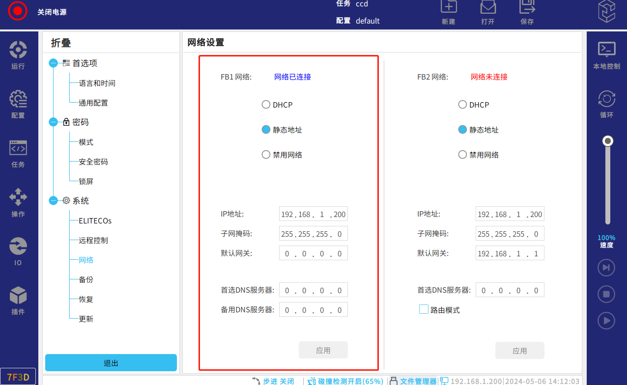 机器人Ip设置: