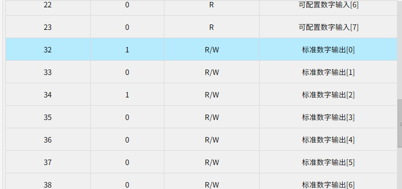 如上图所示,下述以数字输入,地址32;数字输出,地址33;寄存输入,地址266;寄存器输出,地址277为例