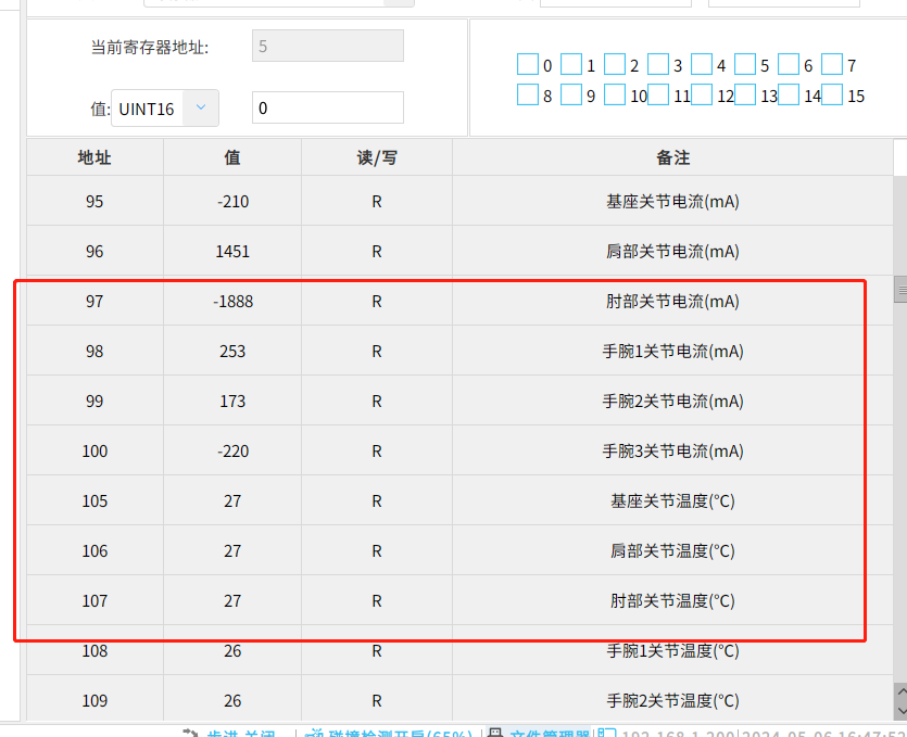 2. 无符号短整型(16 位):用于保存和修改机器人的版本,TCP,系统状态等信息;也用于映射