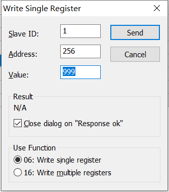 输入下图的id,功能码,地址,数量,点击ok