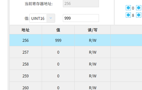 点击值,输入数据,即可在modbus slave上查看到写入的值