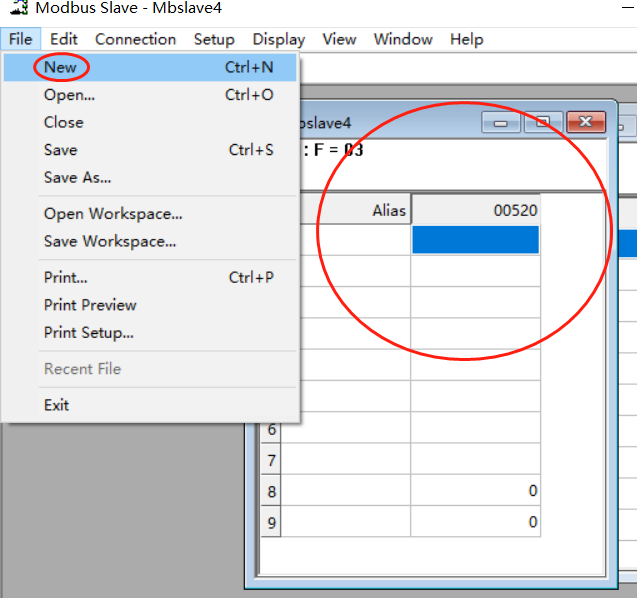 打开modbus slave,可点击File--new,会出来一个新的监视表