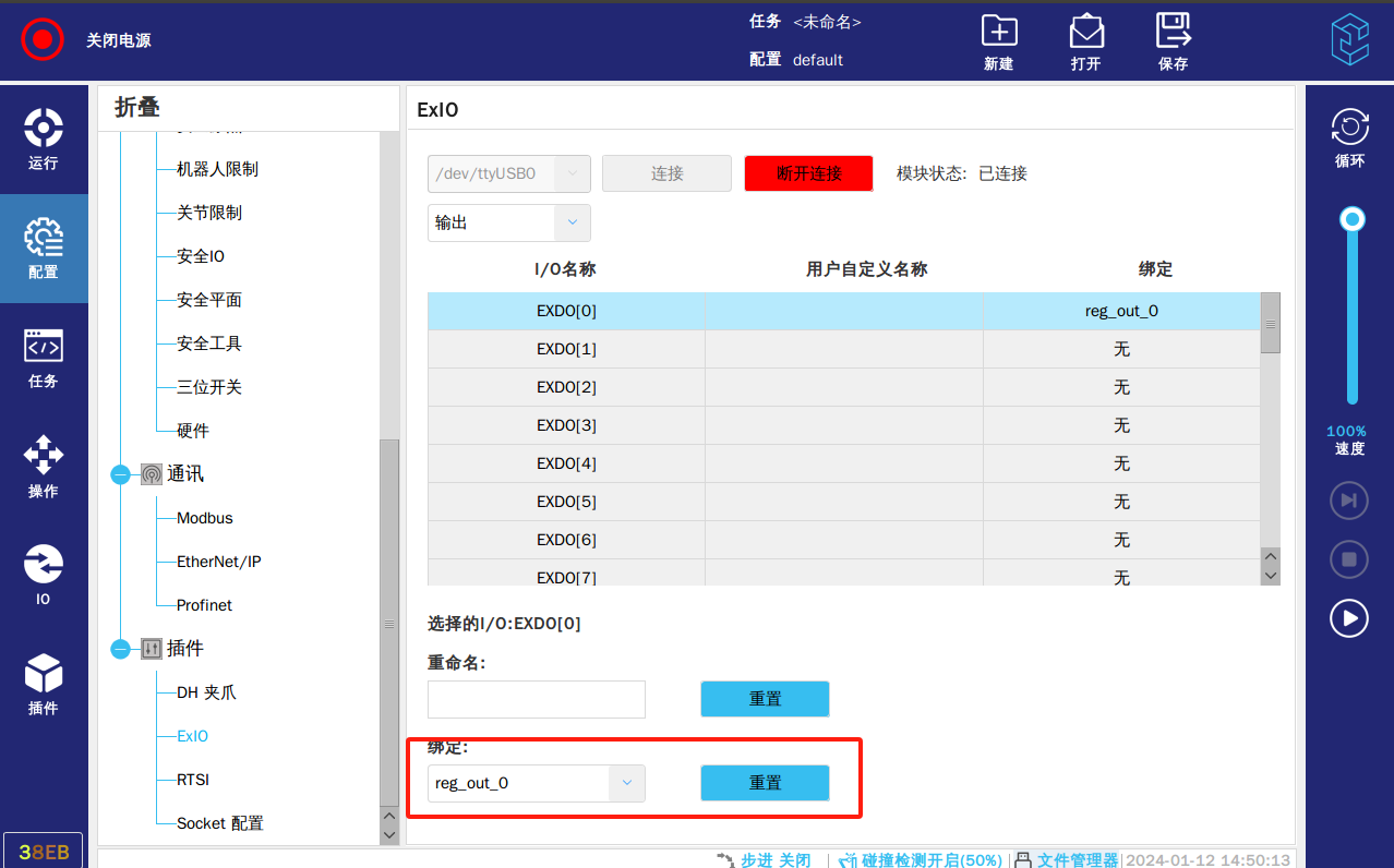 此功能是通过RTSI同步IO模块信号和机器人的寄存器,点击绑定下拉