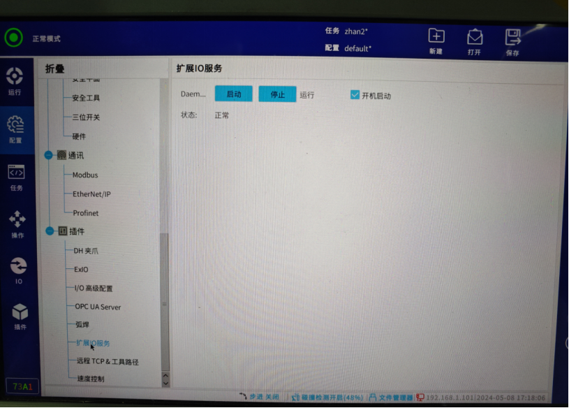 ● IO拓展模块插件映射寄存器搭配高级专用配置来实现控制任务的启停,机器人的上电等功能