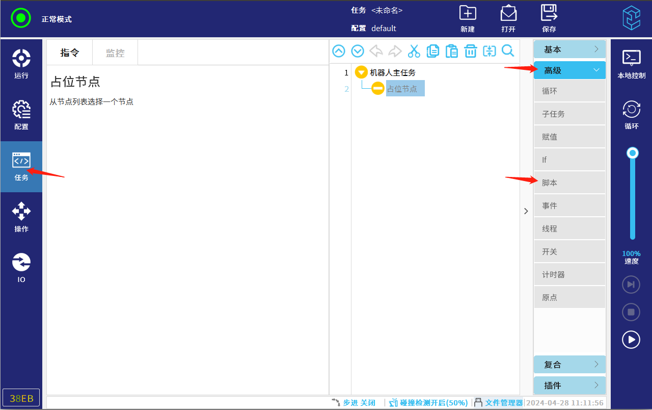 2.5 点击任务树下的脚本行,点击来源选项,选择文件后,点击编辑