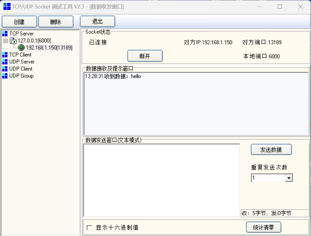 2.11 在发送窗口输入要发送的内容,点击发送数据