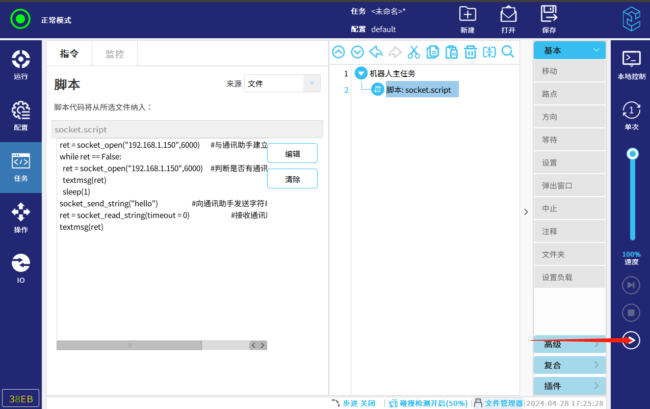 2.6. 编写通讯脚本。详情参考CS脚本手册-通讯目录下的socket,可在G22恒峰官网下载。技术资料-G22恒峰机器人