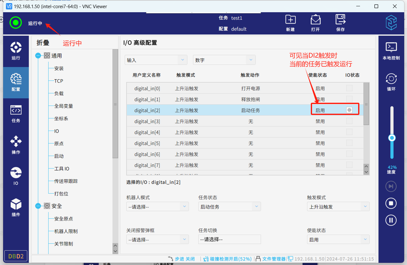 解释:通过外部输入信号控制机器人运行当前打开的任务