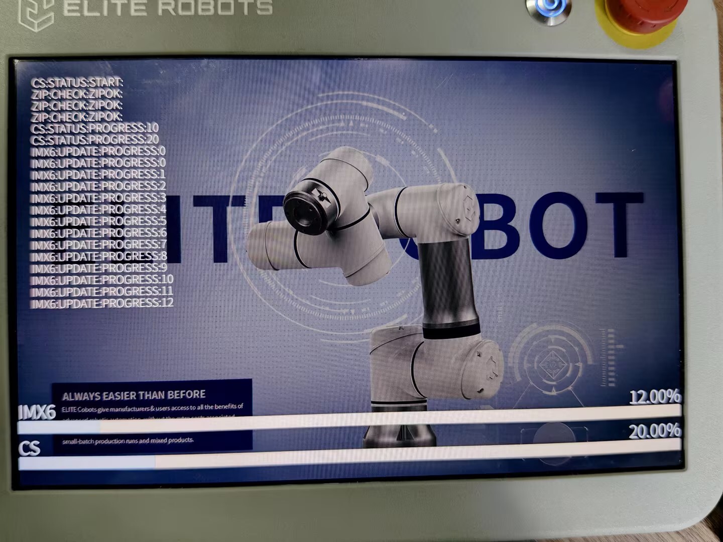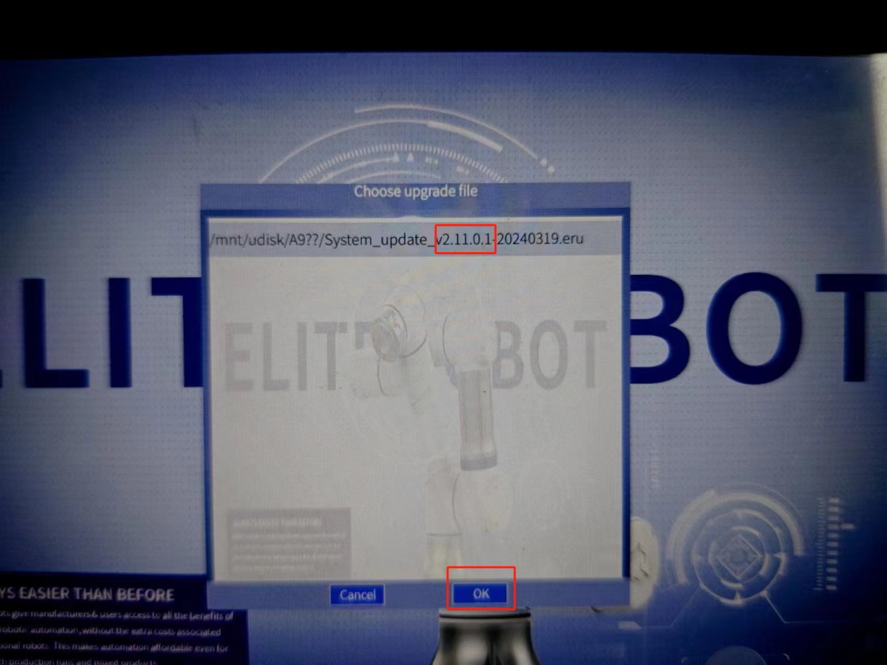 点击更新,机器人会重启,并进入recovery 模式,点击start再次搜索升级文件