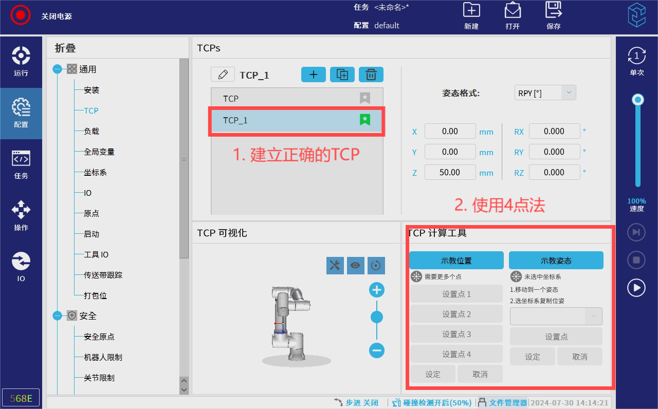 1. G22恒峰在创建安全工具之前首先要建立好正确的TCP工具中心点,在配置-----TCP中创建新的tcp。如下图: